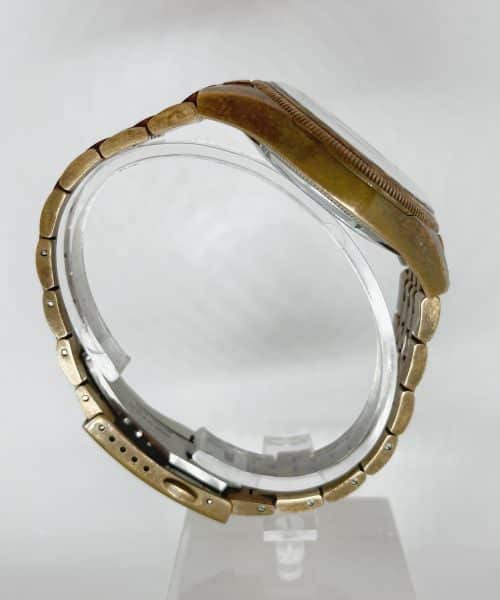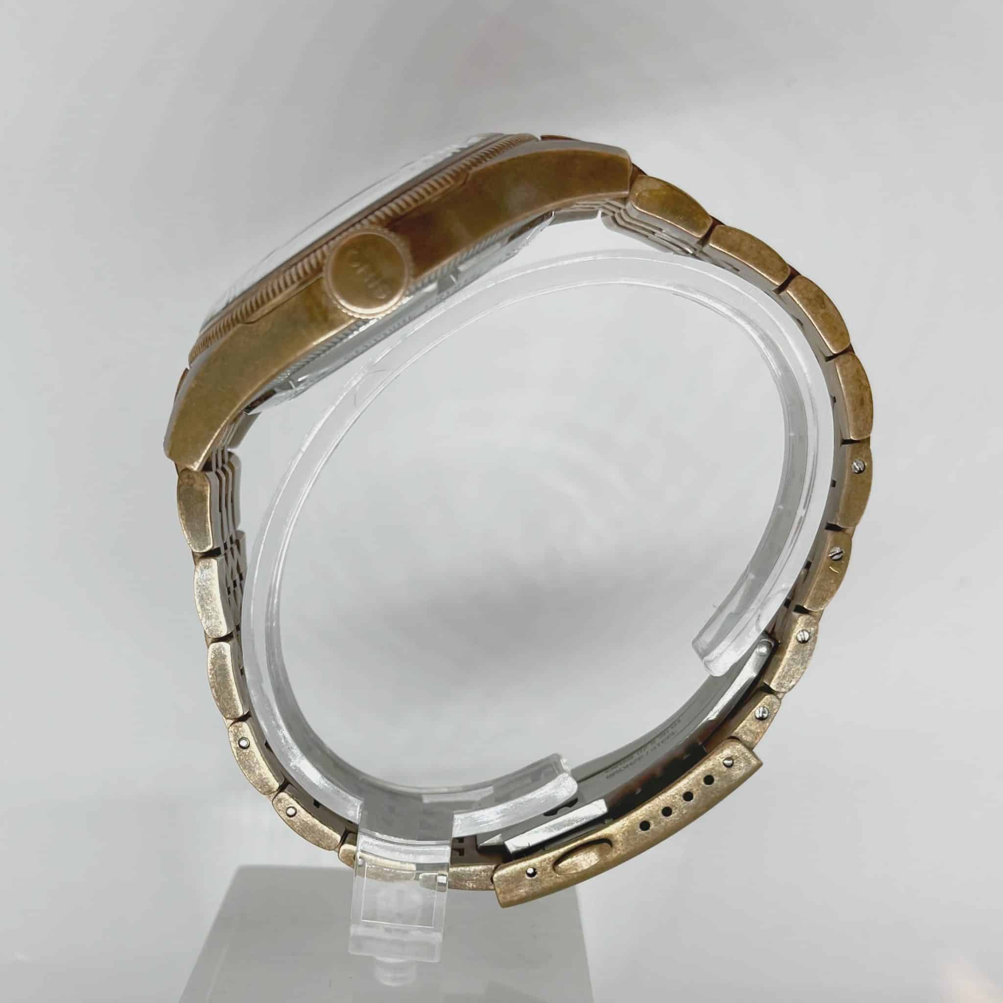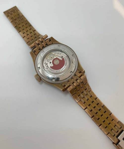 Både kasse og lenke er laget i bronse noe som gir uret en helt unik patina. Om en ønsker en blankere og «nyere» look kan den poleres.